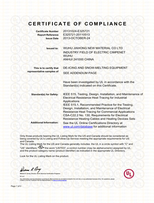 融雪电缆UL认证