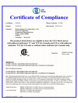 自限温电伴热带加拿大CSA认证